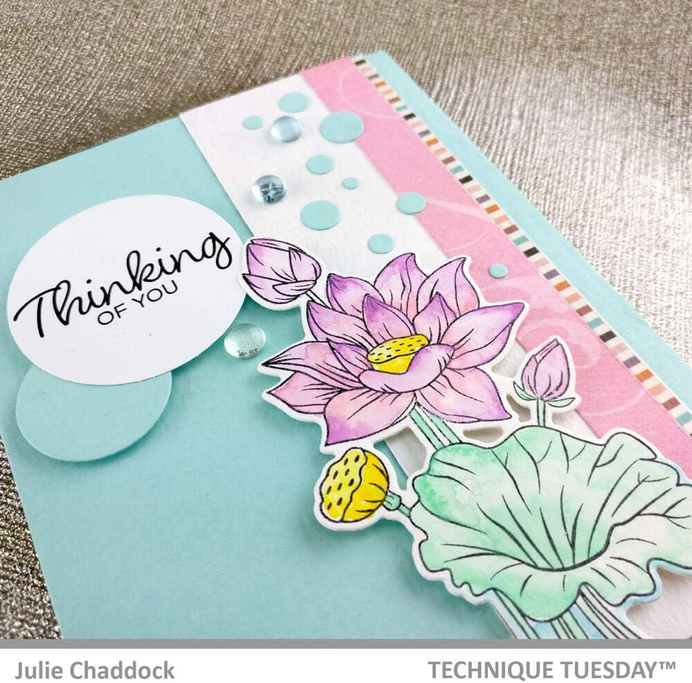 Using a transparent stamp allows for precise positioning, place onto an acrylic block and ink up your stamp using an ink pad or stamping pen.